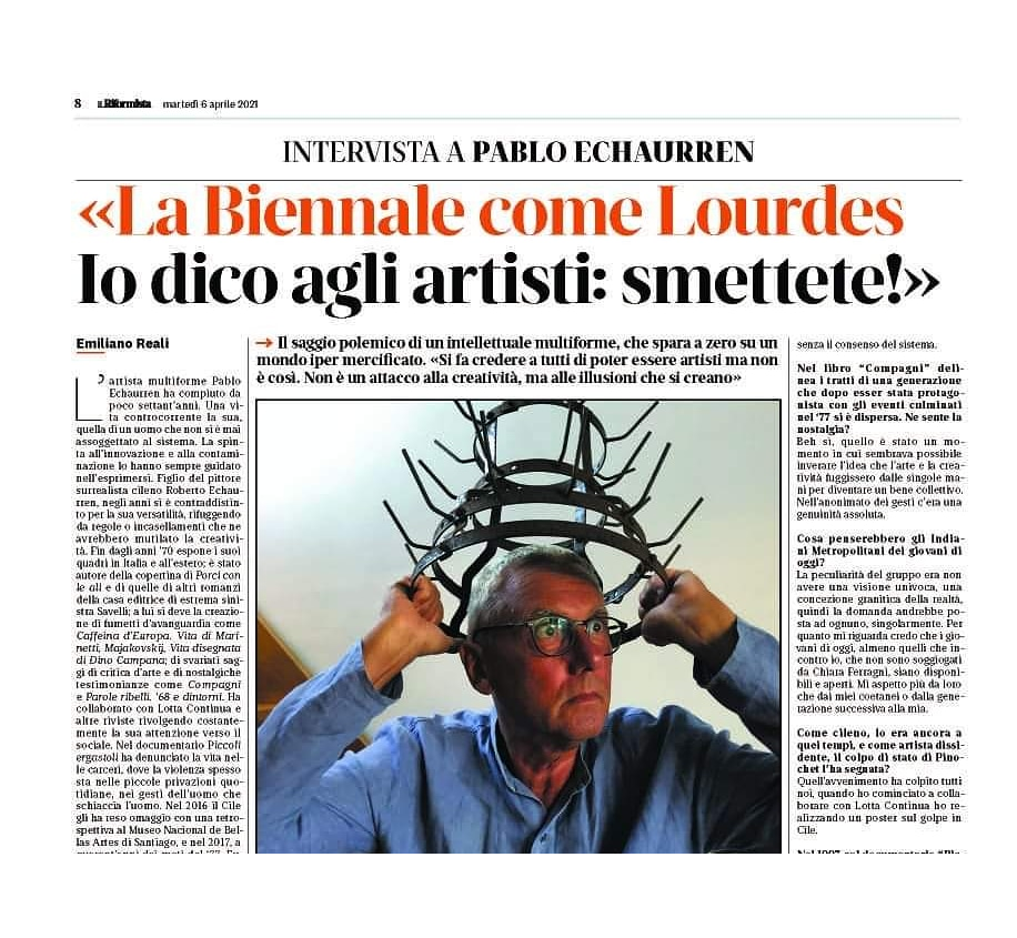 Un'intervista di Emiliano Reali a Pablo Echaurren pubblicata su "Il Riformista" martedì 06 aprile 2021. (link versione web)