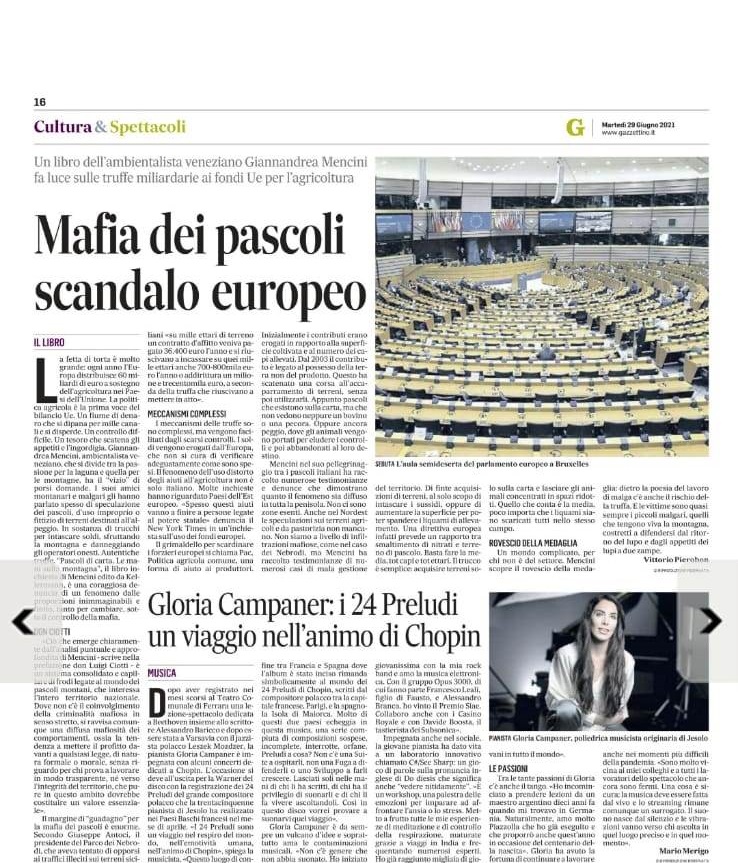 Un'intervista di Vittorio Pierobon a Giannandrea Mencini pubblicata su "Il Gazzettino" martedì 29 giugno 2021.